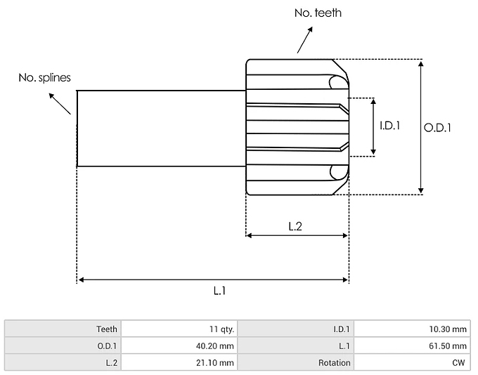 NR-2006382152 marş dişlisi (starter pinion), ALFKB tipi marş motorları için tasarlanmış 11 dişli, saat yönünde dönen (CW) bir tahrik dişlisidir. Yüksek dayanımlı çelik malzemeden üretilmiş olup Bosch tipi sistemlerle tam uyum sağlar.