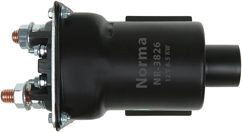 NR-3826 is a 12V, 8.5 kW, Delco Remy 50MT type starter solenoid with a square cover, specially designed for Caterpillar construction machinery and other heavy-duty applications. Ensures robust reliability and powerful performance.
