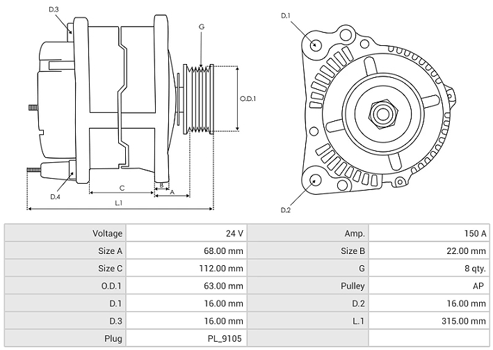 NR-61920425 alternatör, 24V gerilim ve 155A çıkış gücüyle BMC Belde Otobüsleri (AC172R sol kulak tipi) için özel olarak tasarlanmıştır. Fırçalı (brush type) yapısı, entegre regülatörü ve WL (D+) uyarma sistemiyle yüksek performans ve uzun ömür sağlar. Yalıtılmış dönüş (insulated return) özelliği sayesinde elektriksel güvenlik maksimum düzeydedir.