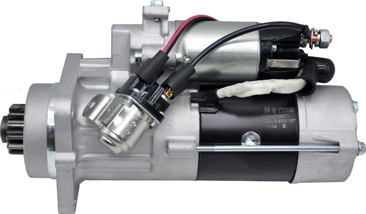 NR-9T66971, 24V, 5.5 kW gücünde, 13 dişli, saat yönünde dönen (CR) marş motorudur. Yeni nesil Mercedes-Benz ağır ticari araç grubu için tasarlanmıştır. Dayanıklı yapısı ve yüksek performansı ile MP4 serisi dahil Antos, Arocs ve Travego modelleriyle uyumludur.