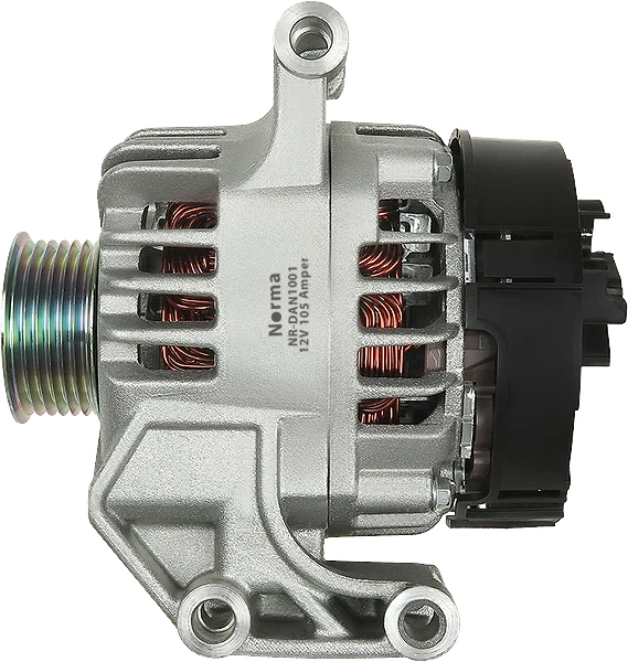 NR-DAN1001, Mitsubishi tip 12V 105A alternatör olup Fiat, Alfa Romeo, Peugeot, Citroën ve Ford araç gruplarıyla uyumludur. 6 kanallı kasnak yapısı ve L tipi cıvatalı terminal bağlantısı sayesinde yüksek şarj kararlılığı ve uzun ömürlü performans sunar.