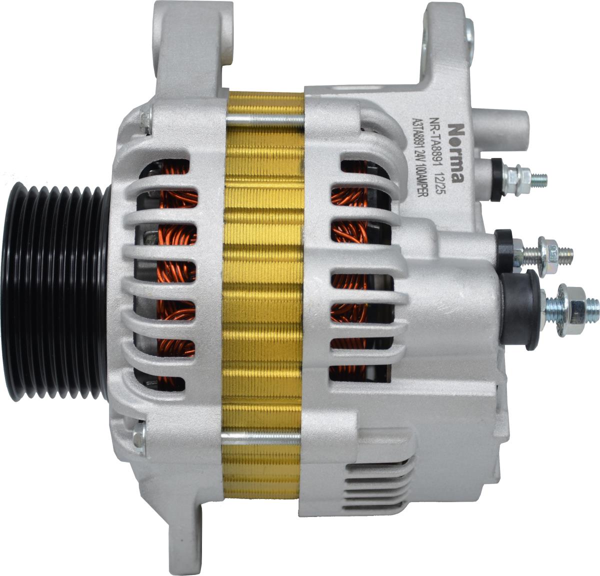 The NR-TA8891 alternator is a 24V, 100A heavy-duty model designed for commercial vehicle applications. Equipped with an 8-groove pulley and L-type bolt terminal, it is built on Mitsubishi architecture and delivers robust and stable performance. It is highly compatible with Ford Cargo series and Otosan-manufactured trucks, ensuring reliable electrical output under demanding conditions.