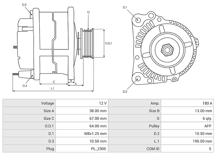 NR-TV1481is a Mitsubishi-type 12V 180A alternatorequipped with a 6-groove overrunning pulley and LIN communication system, designed for modern smart charging systems. It is specifically used in Mitsubishi L200 / Triton 2.2 DI-D (2019→, KJ-KK-KL platforms), offering high efficiency, reduced vibration, and extended service life.