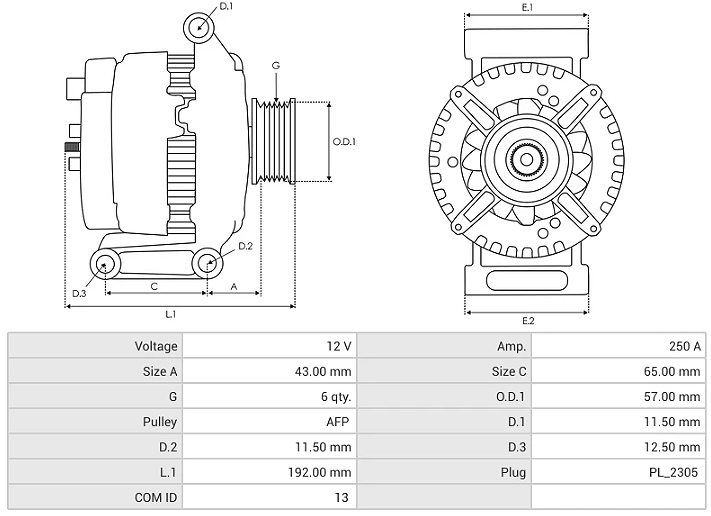NR-TV5881is a Mitsubishi-type 12V 250A high-output alternator, engineered for modern commercial vehicles with high electrical demand. It is widely used in Ford Ranger 2.0 EcoBlue (2022→)and VW Amarok II, delivering maximum charging efficiency and stable performance under heavy load conditions.